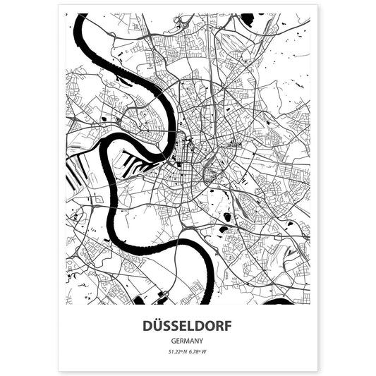 Lámina de mapa de Dusseldorf, Alemania en negro