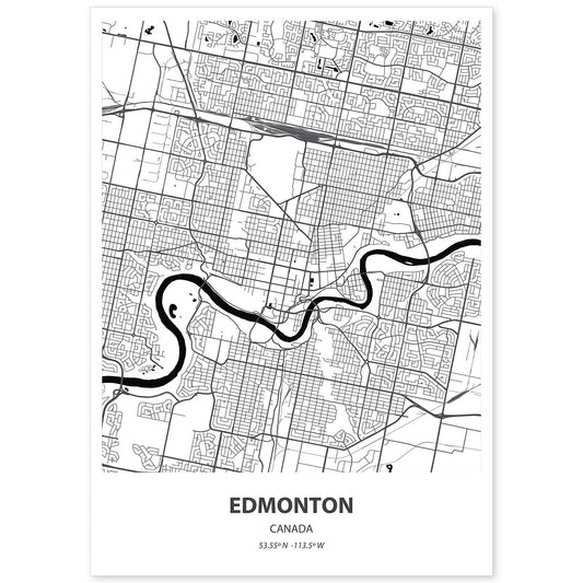 Lámina de Mapa de Edmonton, Canadá en Color Negro