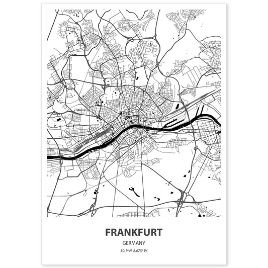 Lámina de Mapa de Frankfurt, Alemania en Color Negro