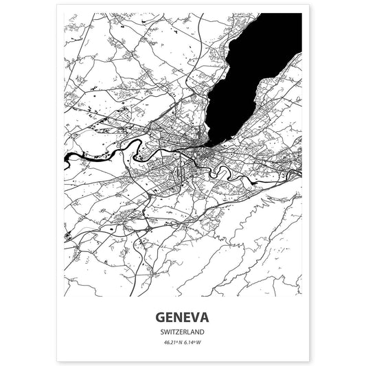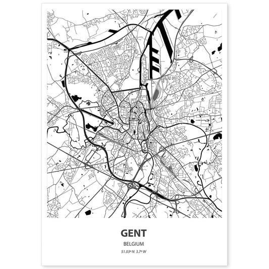 Lámina de Mapa de Gent - Bélgica en Color Negro