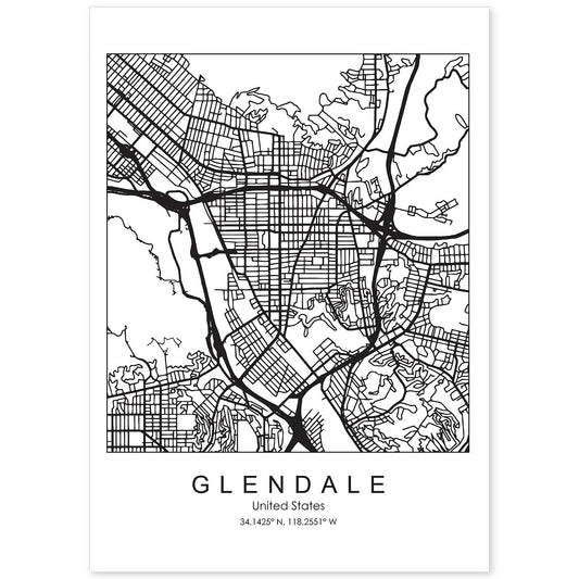 Lámina de Mapa de Hollywood y Carreteras de Estados Unidos
