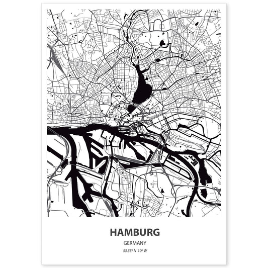 Lámina de Mapa de Hamburg, Alemania en Color Negro