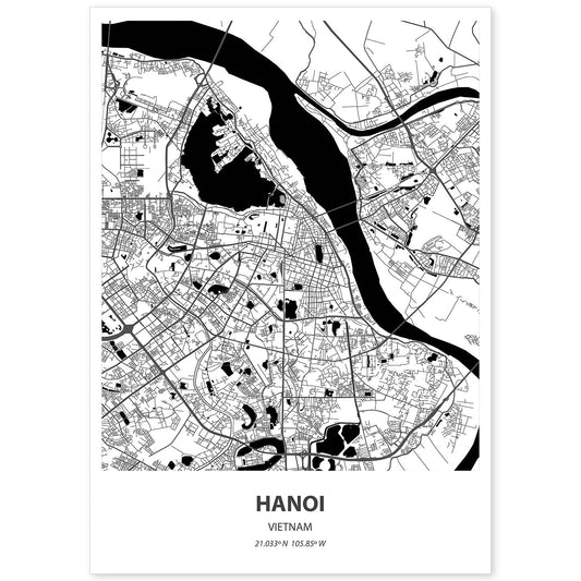 Lámina de Mapa de Hanoi, Vietnam en Color Negro
