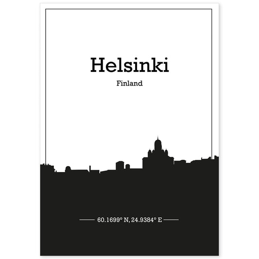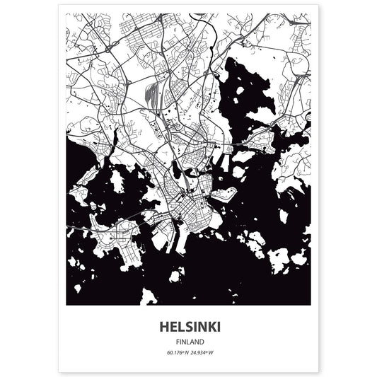 Lámina de Mapa de Helsinki con Skyline en Sombra Negra