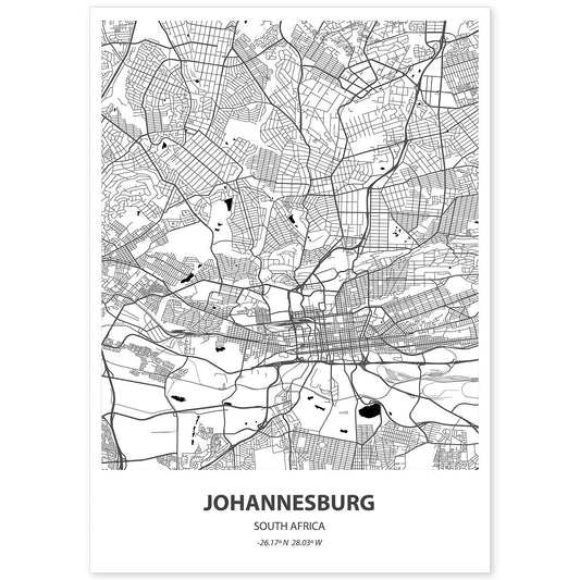Lámina de Mapa de Johannesburg, Sudáfrica en Negro