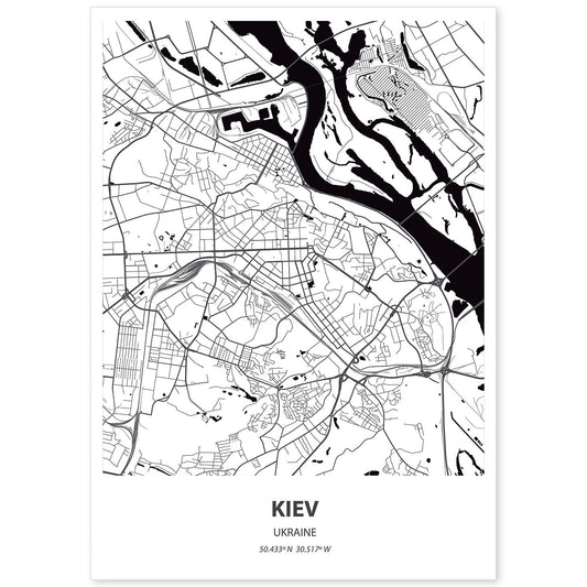 Lámina de Mapa de Kiev, Ucrania en Color Negro