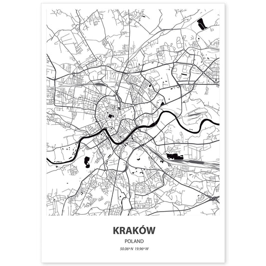 Lámina de Mapa de Krakow, Polonia en Color Negro