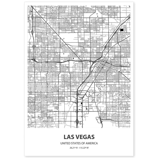 Lámina de Mapa de Lasvegas con Skyline de Sombra Negra