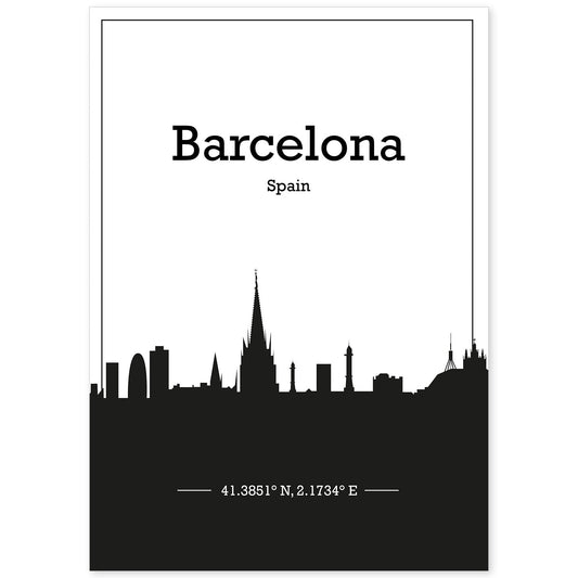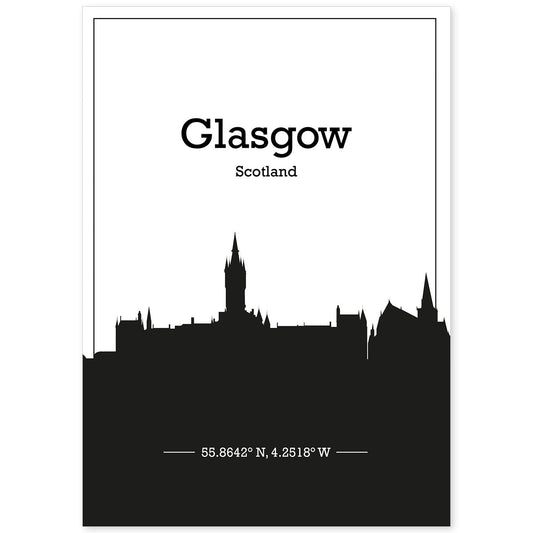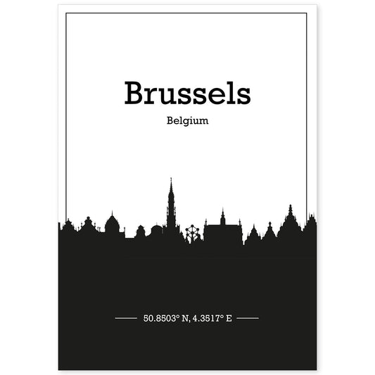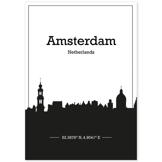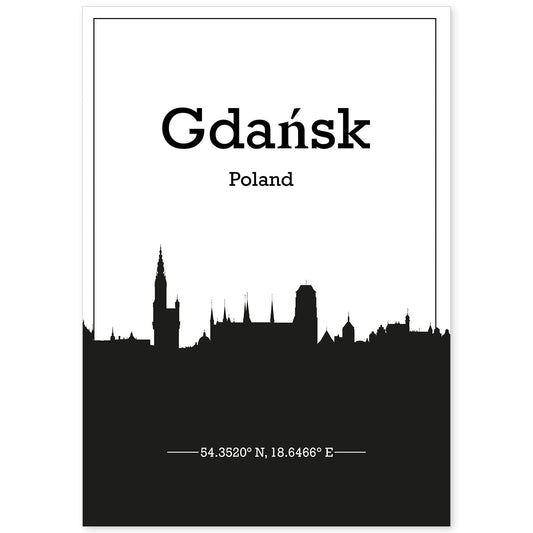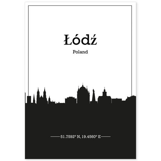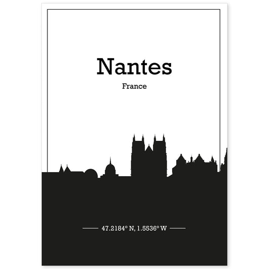 Lámina de Skyline de Nantes, Francia con sombra negra