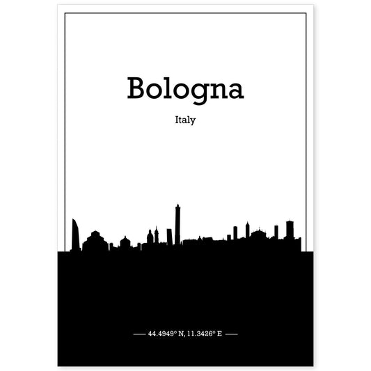 Lámina de Skyline de Bologna, Italia con sombra negra