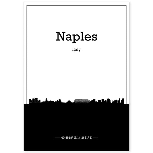 Lámina de Skyline de Naples, Italia con Sombra Negra