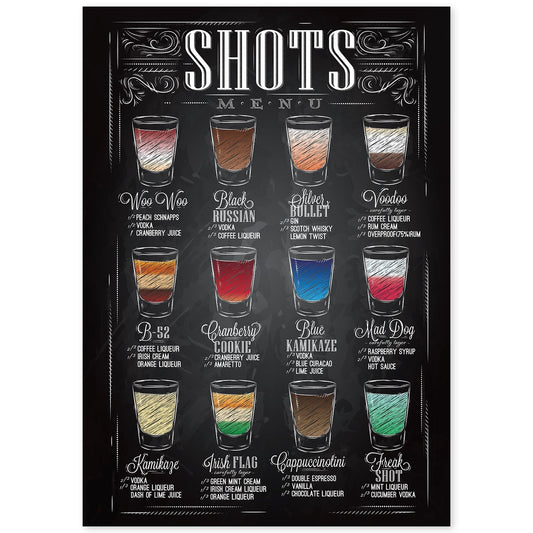 Lámina de Tipos de Chupitos y Cervezas para Bares