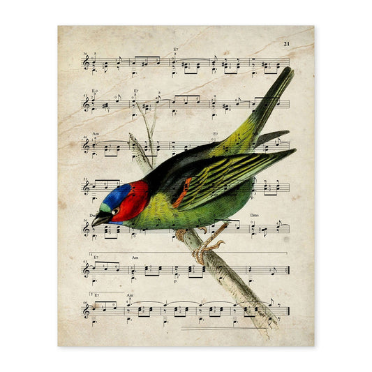 Lámina de Thraupiscyanocephala con Partituras Musicales