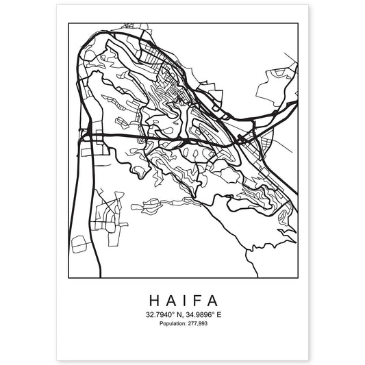 Lámina estilo nórdico del mapa de Haifa en blanco y negro