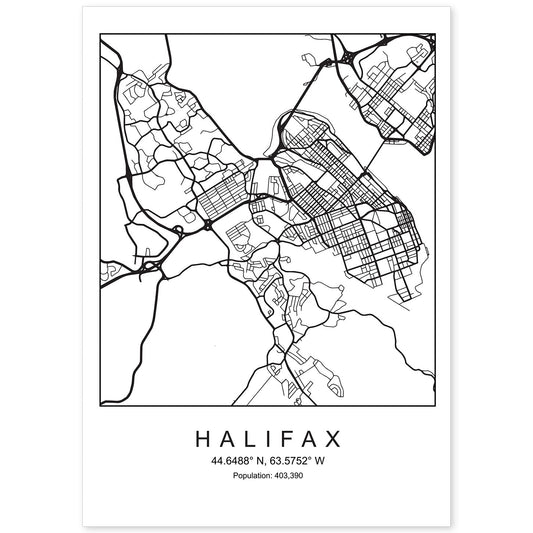 Lámina estilo nórdico del mapa de Halifax en blanco y negro