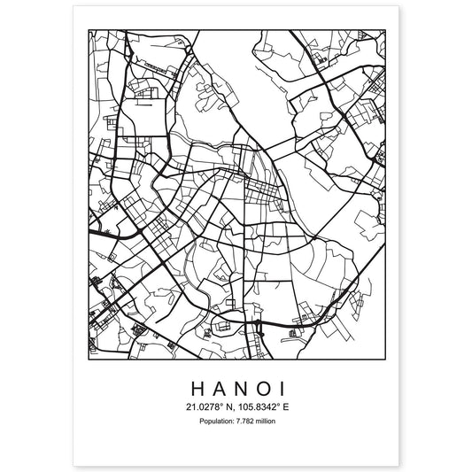 Lámina estilo nórdico del mapa de Hanoi en blanco y negro