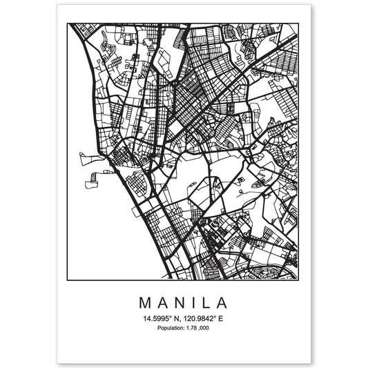 Lámina estilo nórdico del mapa de Manila en blanco y negro