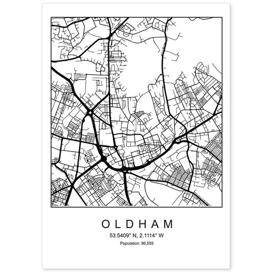 Lámina estilo nórdico del mapa de Oldham en blanco y negro