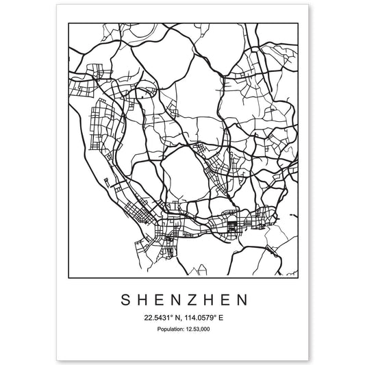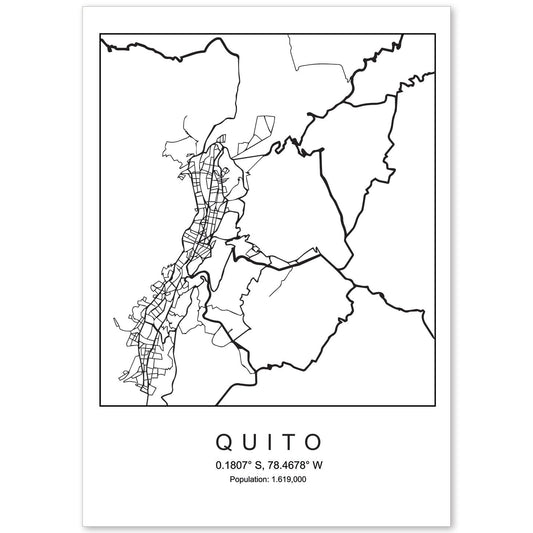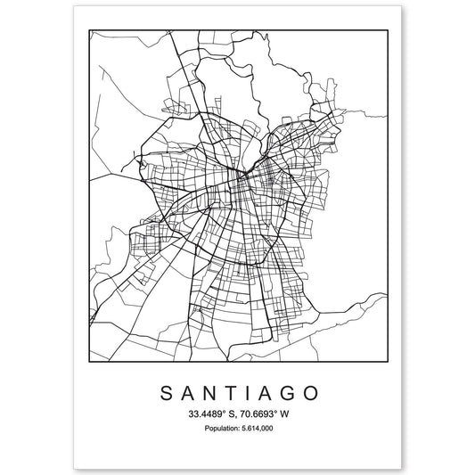 Lámina estilo nórdico del mapa de Santiago en blanco y negro