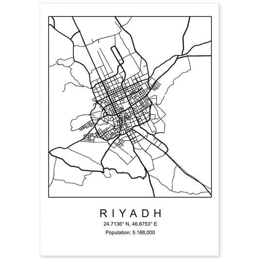 Lámina estilo nórdico del mapa de Riyadh en blanco y negro