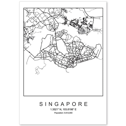 Lámina estilo nórdico del mapa de Singapore en blanco y negro