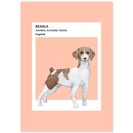 Lámina Ilustrada de Beagle en Tonos Cálidos y Pastel