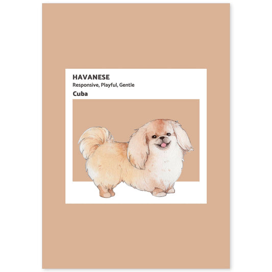 Lámina Ilustrada de Bichón Habanero en Tonos Cálidos y Pastel