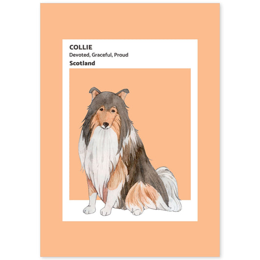Lámina Ilustrada de Border Collie en Tonos Cálidos y Pastel