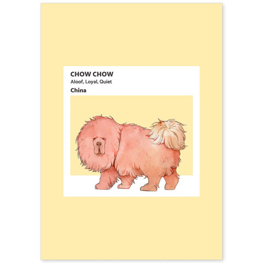 Lámina Ilustrada de Chow Chow en Tonos Cálidos y Pastel