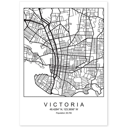 Lámina Mapa Ciudad Victoria Estilo Nórdico Blanco y Negro