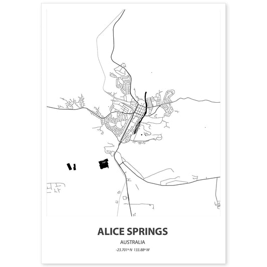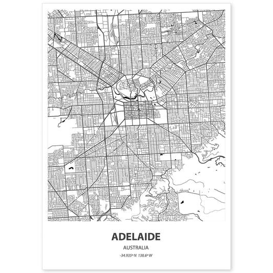 Lámina Mapa de Adelaide, Australia en Color Negro
