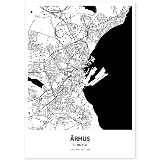 Lámina Mapa de Arhus - Dinamarca en Negro