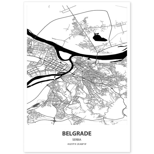 Lámina Mapa de Belgrade - Serbia en Color Negro