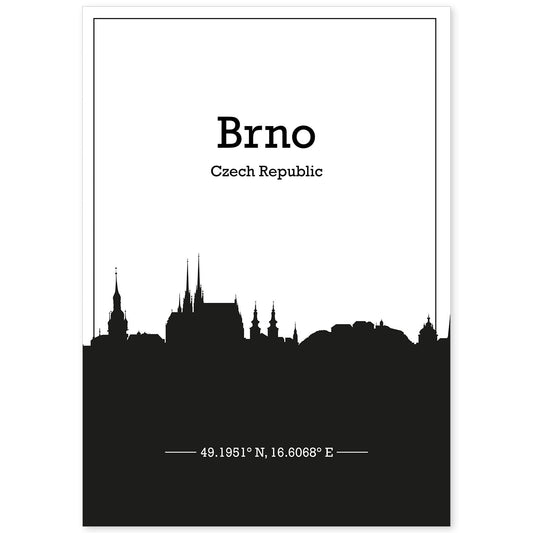 Lámina Mapa de Brno con Skyline en Sombra Negra