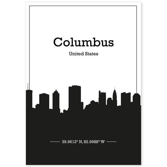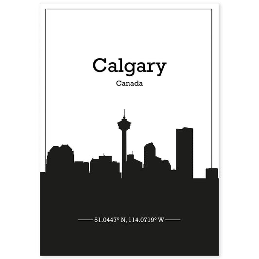 Lámina Mapa de Calgary y Skyline con Sombra Negra