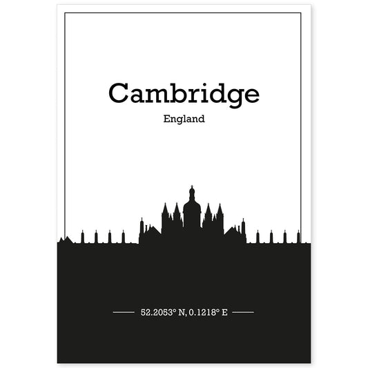 Lámina Mapa de Cambridge con Skyline Sombra Negra