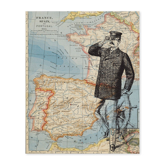Lámina Tierra a la Vista con Diseño de Objetos Sobre Mapas Vintage