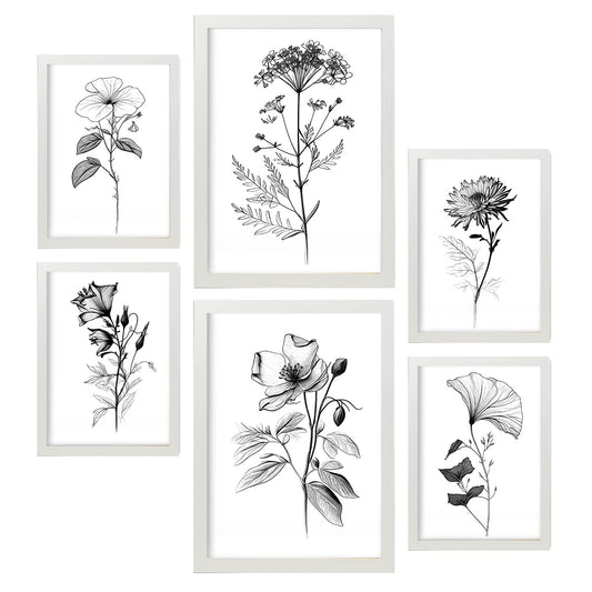 Nacnic Conjunto de Láminas Line Flowers_6 para Diseño de Habitación