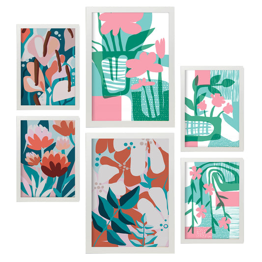 Nacnic Set de 6 Láminas de Flores Abstractas en Verdes Rosados