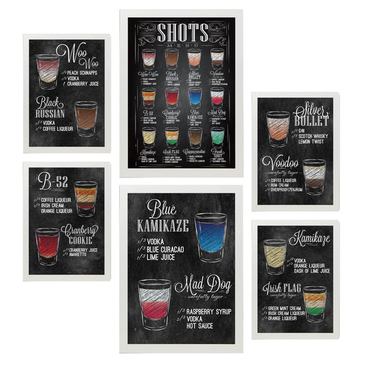 Set de 6 láminas vintage de cerveza con carteles publicitarios retro en colores vivos para decorar bar, cocina o restaurante moderno – 2 grandes y 4 medianos
