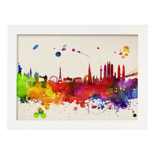 Lámina Ilustrada de Mapas y Ciudades de Europa