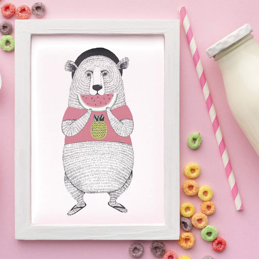 Set de 4 láminas nordicas de animales con chicle rosa para niños