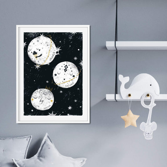 Set de 3 láminas nordicas de Lunas y Planetas para niños