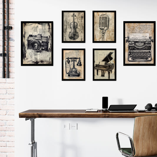 Amor Vintage. Cámara, micro, piano, violín, teléfono - Laminas