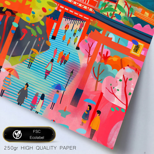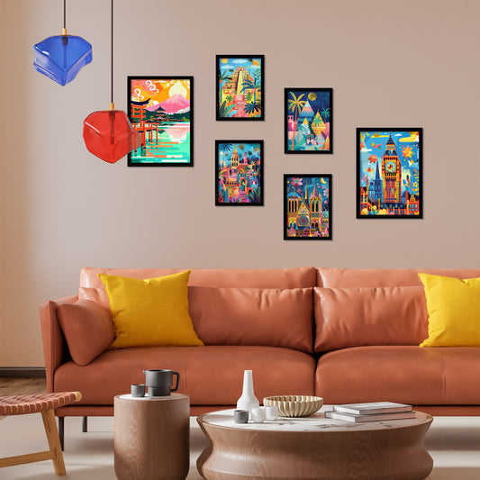 Monuments inspired by Mary Blair. Eiffel, Praga, Saint Michele, Alhambra, Belgium, Fushimi Inari