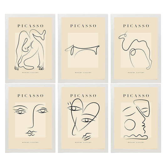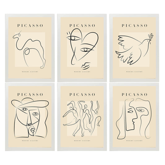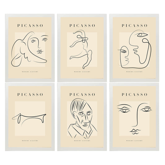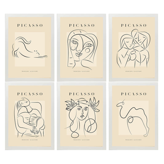 Conjunto de 6 Láminas Decorativas Nacnic de Picasso, Colección Bocetos, Estilo Galería de Arte Moderno