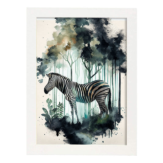 Lámina Acuarela de Cebra en el Bosque Nacnic