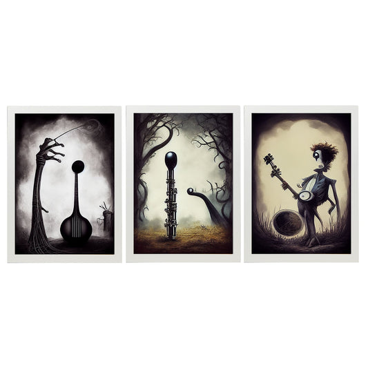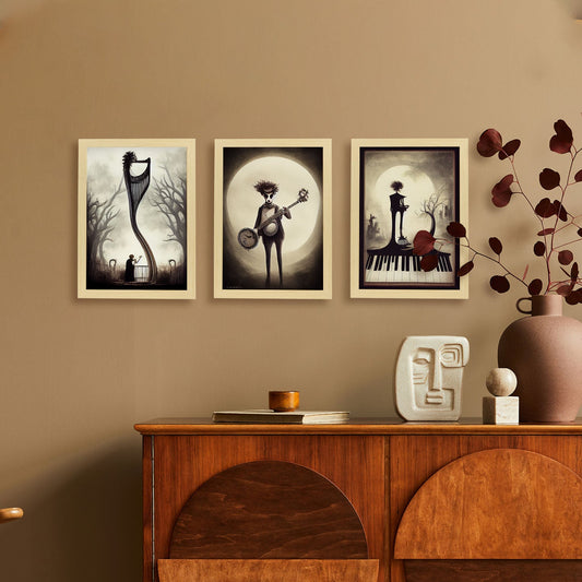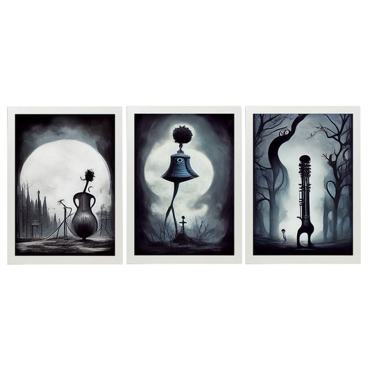 Ilustraciones y Laminas de Animales al Estilo Burton, Colección Oscura y Gótica para Diseño de Interiores