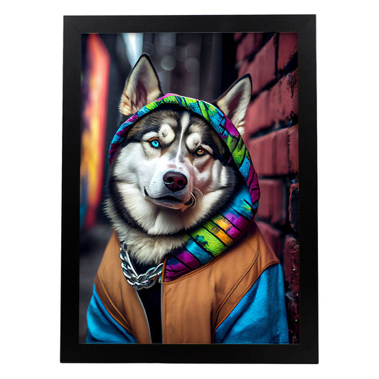 Lámina Nacnic de Husky Siberiano con Ropa Humana en Estilo Fotografía a Color