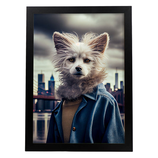 Lámina Nacnic de Bichón Maltés Audaz en Estilo Fotografía a Todo Color con Ropa Humana